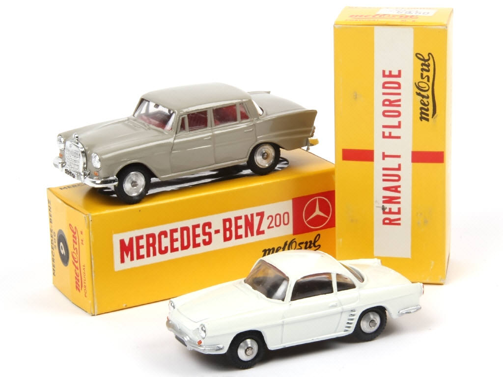 comprend : MERCEDES 200 (état 'A', manques de pellicule chromée par endroits) & RENAULT FLORIDE (état 'A-', un manque de peinture sous le plancher)