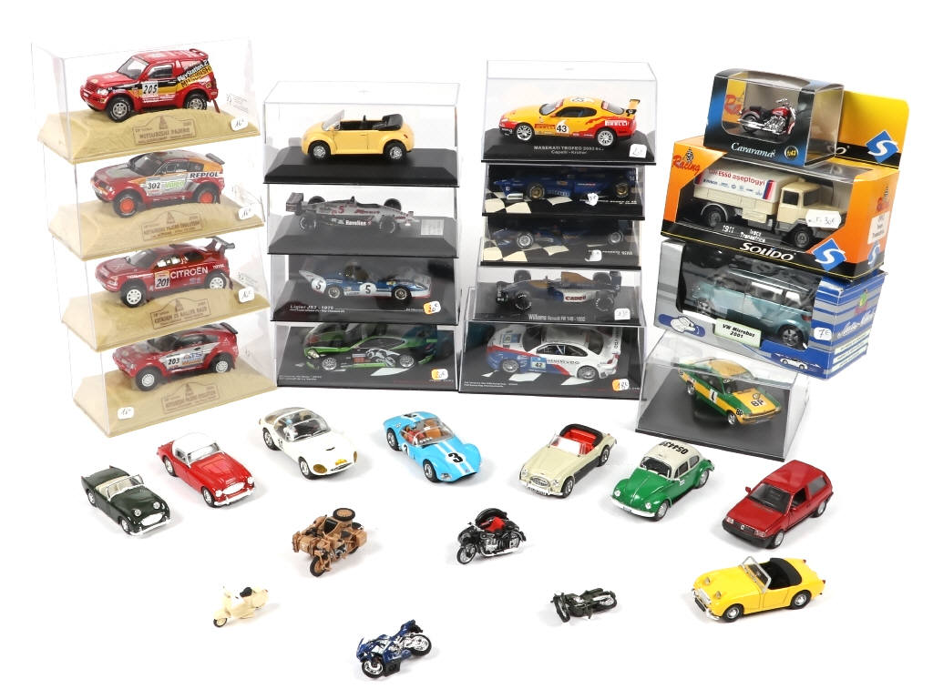 on y retrouve notamment les marques : SOLIDO, SCHABAK, VITESSE, NOREV & CORGI - comprend notamment les modèles : AUSTIN, VOLKSWAGEN, MITSUBISHI, LIGIER & JAGUAR - boîtes en états de 'a' à 'c' - possibilité de manques & parties cassées