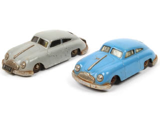 GESCHA (ALLEMAGNE) Ensemble de 2 PORSCHE en tôle peinte