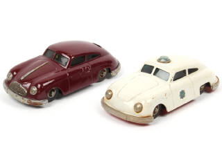 GESCHA (ALLEMAGNE) Ensemble de 2 PORSCHE en tôle peinte