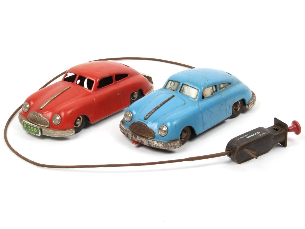 GESCHA (ALLEMAGNE) Ensemble de 2 PORSCHE en tôle peinte