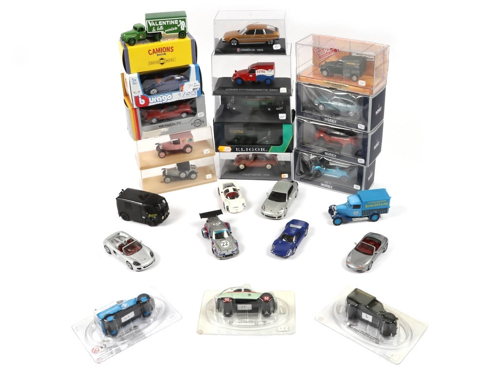 on y retrouve notamment les marques : SCHUCO, NOREV, ALTAYA & BBURAGO - comprend notamment les modèles : CITROËN, PORSCHE & VOLKSWAGEN - 17 modèles en boîtes en état de 'a' à 'c' - possibilité de manques & parties cassées