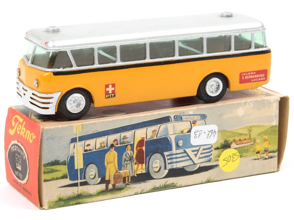 TEKNO (DANEMARK) 850 VOLVO Autobus 'PTT SUISSE' jaune d'or & gris métal