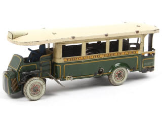 longueur 22 cm - version avec moteur à clef (fonctionne) & direction - très légères traces d'oxydation & frottements plus ou moins importants par endroits