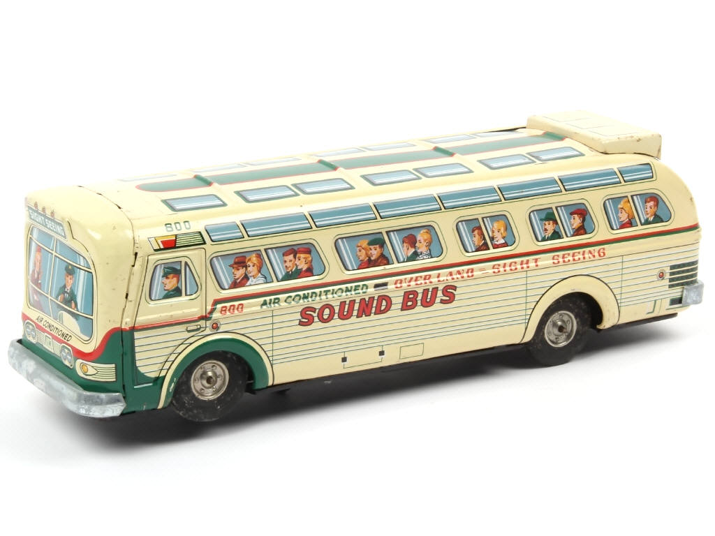 MASUDAYA TOYS Co. (JAPON) 3156 GM Autocar 'SOUND BUS' en tôle lithographiée crème & vert