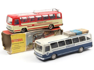 JOUSTRA (FRANCE) Ensemble de 2 autocars en tôle lithographiées