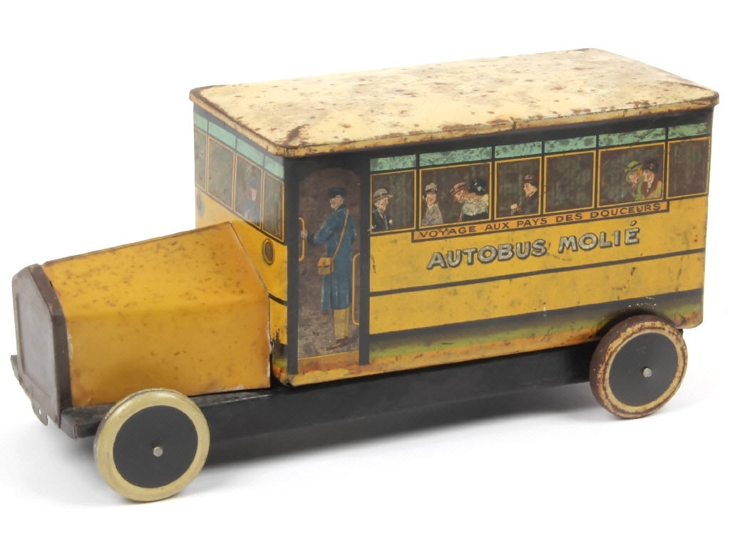 G. de ANDREIS (FRANCE) Autobus en tôle lithographiée 'AUTOBUS MOLIE' jaune, noir & crème