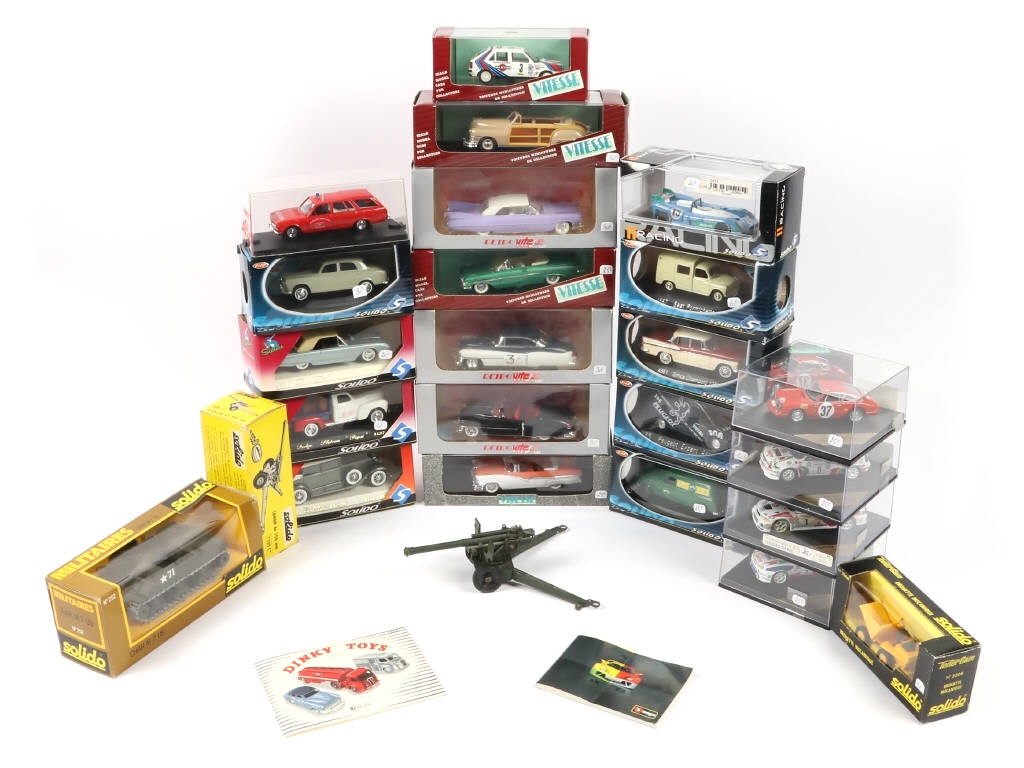 on y retrouve les marques : SOLIDO & VITESSE - comprend notamment les modèles : PORSCHE, TOYOTA, MITSUBISHI & DODGE - boîtes en états de 'a' à 'd' - possibilité de manques & parties cassées - on y joint 2 fascicules des marques DINKY TOYS (ATLAS) et BBURAGO en état 'b'