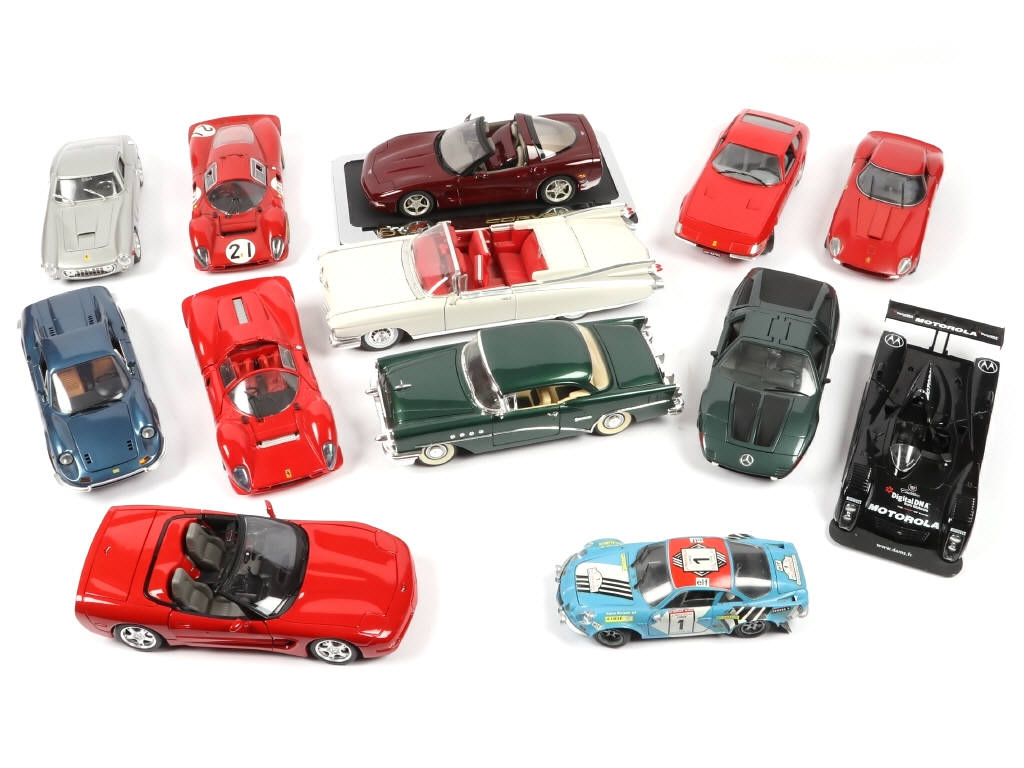 échelle 1/18ème - on y retrouve notamment les marques : JOUEF EVOLUTION, MAISTO, MATTEL & BBURAGO - comprend notamment les modèles : CHEVROLET, FERRARI, MERCEDES & RENAULT - manques & parties cassées