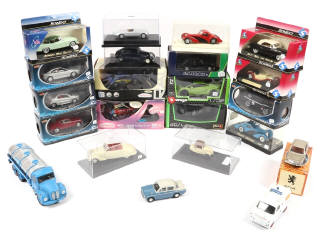 on y retrouve notamment les marques : IXO, NOREV, SOLIDO & VANGUARDS - comprend notamment les modèles : PEUGEOT, FORD, STUDEBAKER & JAGUAR - boîtes en états de 'a' à 'c' - possibilité de manques & parties cassées