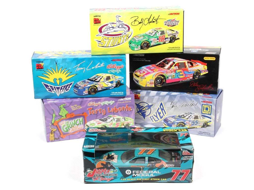 comprend les marques : ACTION & RACING CHAMPION (carrosserie poussiéreuse - boite en état 'c' - sans cale)