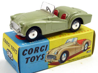 CORGI TOYS (GB) 305 TRIUMPH TR3 vert tilleul métal, sièges tomate