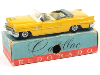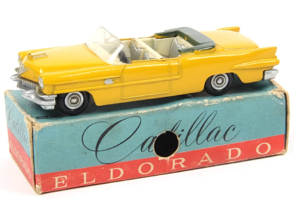 MERCURY (ITALIE) 28 CADILLAC ELDORADO Convertible jaune d'or, intérieur crème, sièges argent & capote vert foncé métal