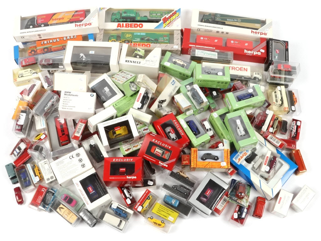 échelle 1/87e - on y retrouve notamment les marques : HERPA, WIKING, ALBEDO, NOREV & REVELL - comprend notamment les modèles : RENAULT, CITROËN, VOLKSWAGEN & AUDI - possibilité de manques & parties cassées