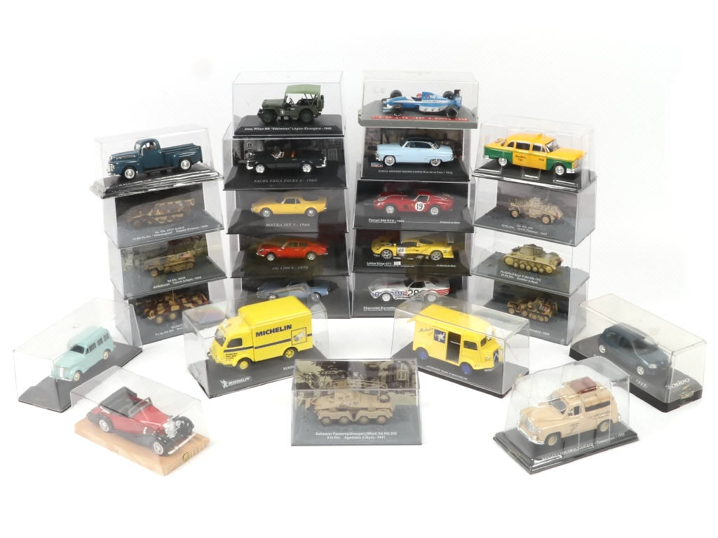quelques vehicules militaires - on y retrouve notamment les marques : SOLIDO & ONYX - comprend notamment les modèles : LOTUS, FERRARI, RENAULT & LIGIER - possibilité de manques & parties cassées - une boîte non d'origine