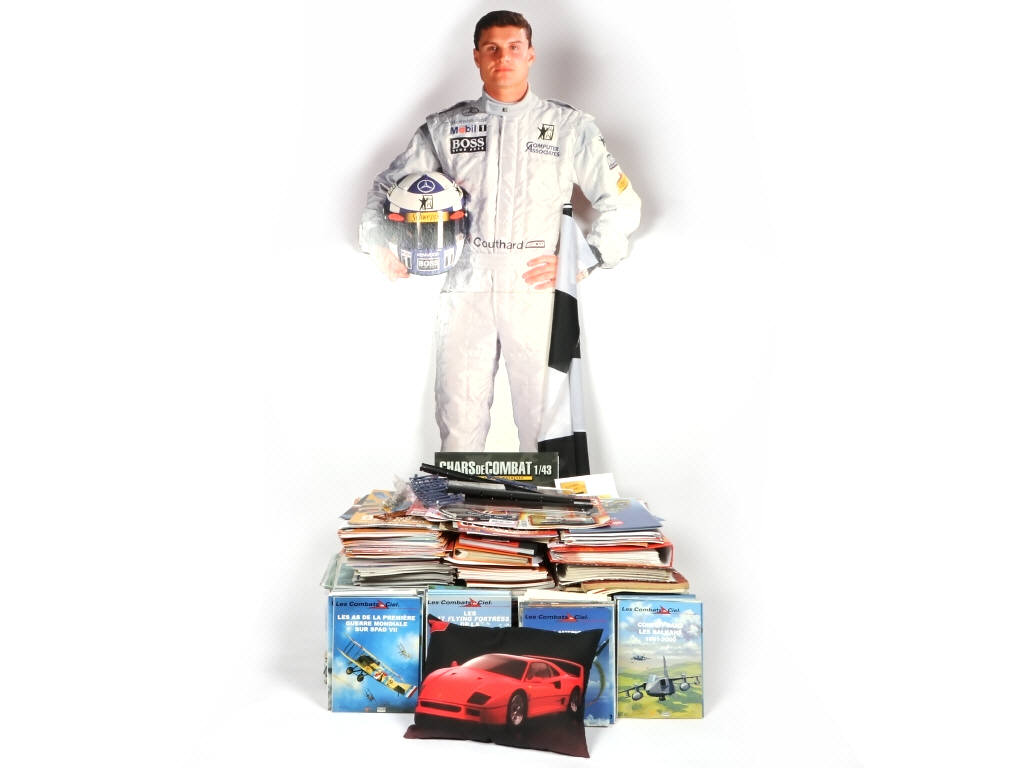 poids (77 Kgs) & encombrement importants - on y retrouve notamment les marques : SIKU, HACHETTE, NOREV & OSPREY AVIATION - livres, catalogues, fascicules, présentoir taille réelle, drapeau, etc - possibilité de manques & parties déchirées - on y joint un lot d'accessoires - PAS D'EXPEDITION POUR CE LOT