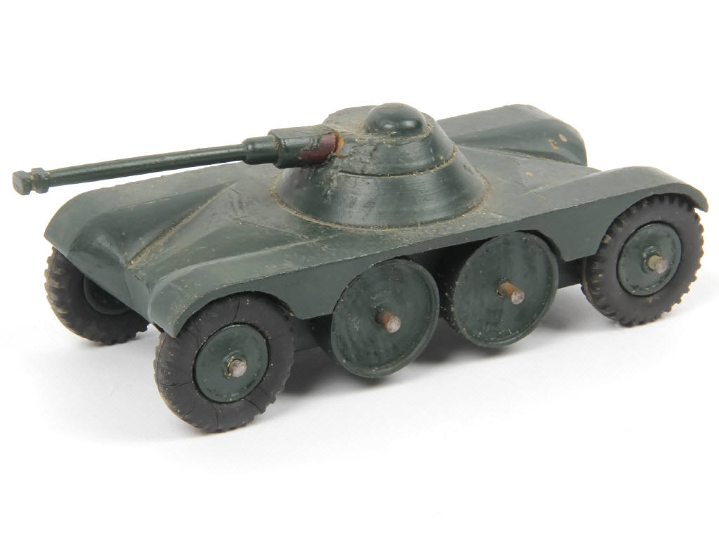 ce modèle unique de présérie, issu d'une collection privée, est proposé pour la toute première fois en vente - son propriétaire l'a obtenu directement auprès d'un collaborateur de Bobigny lors de la fermeture de l'usine en France - ce projet a été réalisé en bois peint, de dimension un peu plus importante que le modèle final - les roues sont également en bois, chaussées de pneus adaptés (un craquelé) - le canon semble avoir été fabriqué à part puis fixé sur la tourelle - un modèle de ce type était généralement sculpté avant la fabrication définitive du moule - il est exactement dans l'esprit des modèles déjà présentés en vente et représente à lui seul une partie de l'histoire de cette marque ! - PIECE INESTIMABLE ET MYTHIQUE !