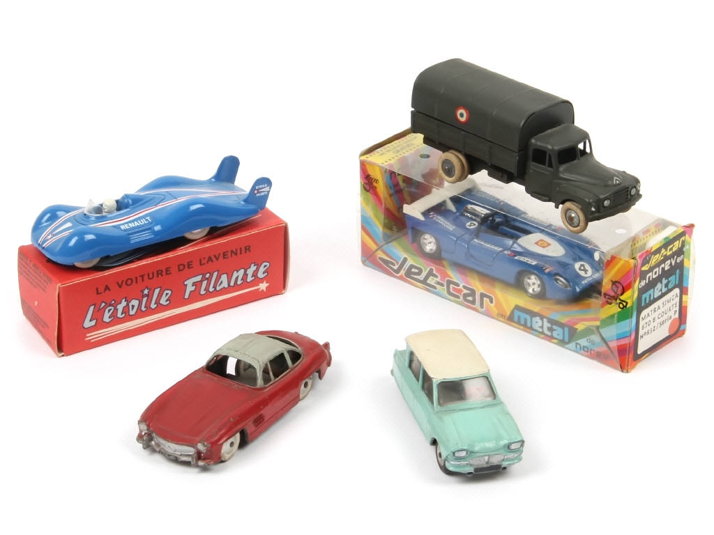 on y retrouve les marques : QUIRALU (2 exemplaires dont une production récente en boîte état 'c'), JRD (pneus séchés), SOLIDO & NOREV (en boîte état 'c')