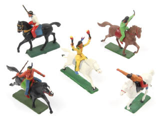 STARLUX (FRANCE) Ensemble de 4 indiens & un cow-boy sur leur monture