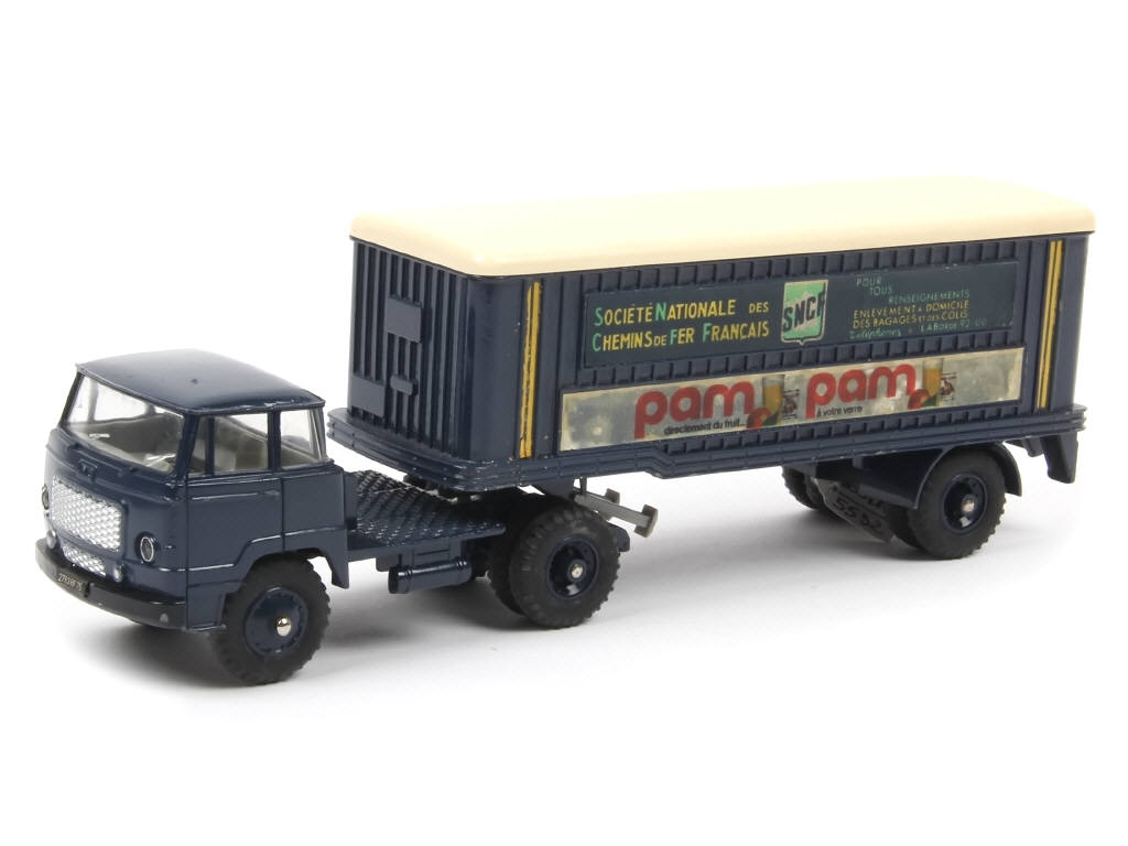 DINKY TOYS (FRANCE) 803 UNIC Semi-remorque 'S.N.C.F PAM PAM' bleu foncé, toit crème