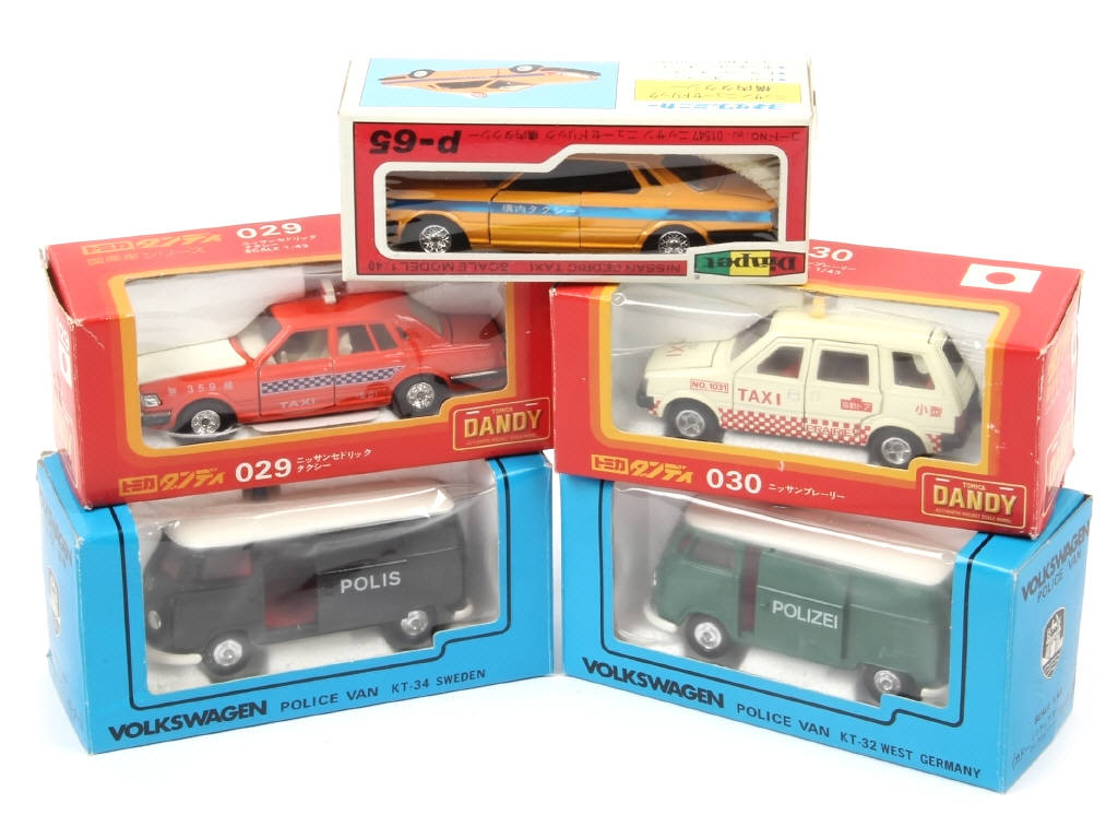 on y retrouve les marques : YONEZAWA TOYS DIAPET & TOMICA DANDY (2 exemplaires de la marque KADO) - quelques accrocs sur les boîtes