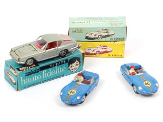 comprend : MASERATI MISTRAL (optiques de phares non d'origine, petites traces de vernis sur la carrosserie) & PANHARD DB (2 exemplaires) - quelques petits accrocs sur les boîtes dont une en état 'c'