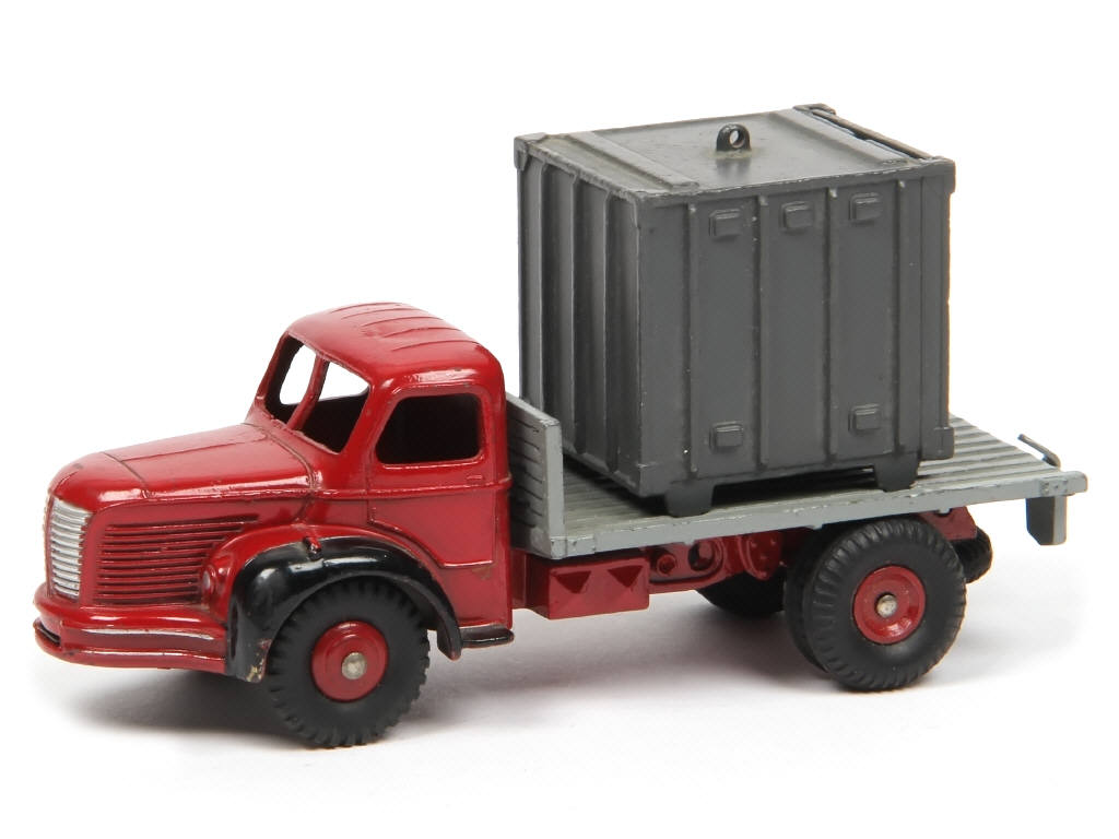 DINKY TOYS (FRANCE) 34B BERLIET Plateau avec container (version avec anneau moulé) rouge, plateau gris clair