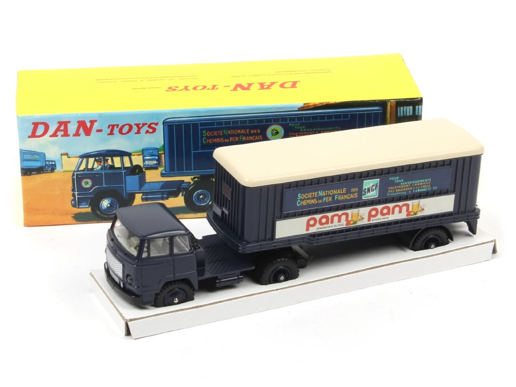DAN-TOYS (FRANCE) 004 UNIC Semi-remorque 'S.N.C.F PAM PAM' bleu foncé, toit crème