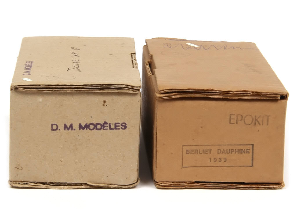 kits en résine à monter (semblent complets) - comprend : JAGUAR XK SS & BERLIET DAUPHINE 1939 - on y retrouve les marques : D.M. MODELES & BELLE EPOQUE (boite EPOKIT)
