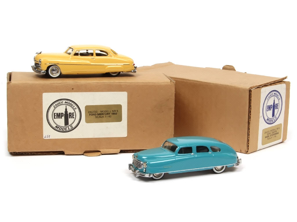 série EMPIRE réalisé par TIN WIZARD - comprend : NASH STATESMAN 1950 & FORD MERCURY 1950 - une déchirure sur un onglet de boite