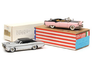 comprend : PONTIAC GTO 1966 (légers frottements sur le hard-top) & DODGE ROYAL LANCER 1955 (une légère fêlure sur l'entourage de pare-brise)- on y retrouve les marques : TRON & MINIATURE CARS