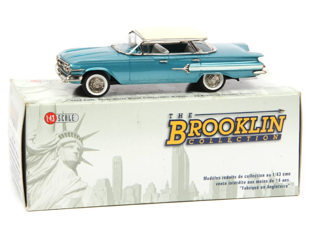 BROOKLIN MODELS (GB) 166 CHEVROLET IMPALA 4 DOOR Hard-top sport SEDAN 1960 bleu métal, toit blanc cassé