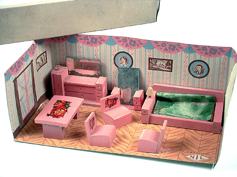 CREATION NIL (FRANCE) Coffret-diorama de mobiliers miniatures en bois rose