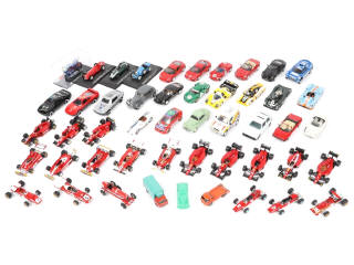 on y retrouve notamment les marques : HUSKY, NEWRAY, BBURAGO & RIO - comprend notamment les modèles : AUDI, FERRARI, ALFA ROMEO & MITSUBISHI - un modèle en boîte en état 'b' - manques & parties cassées