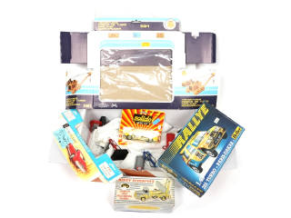 on y retrouve notamment les marques : SOLIDO, TEKNO, DINKY TOYS (vide) & HELLER (semble complet) - boîtes en états de 'b' à 'c' - possibilité de manques & parties cassées