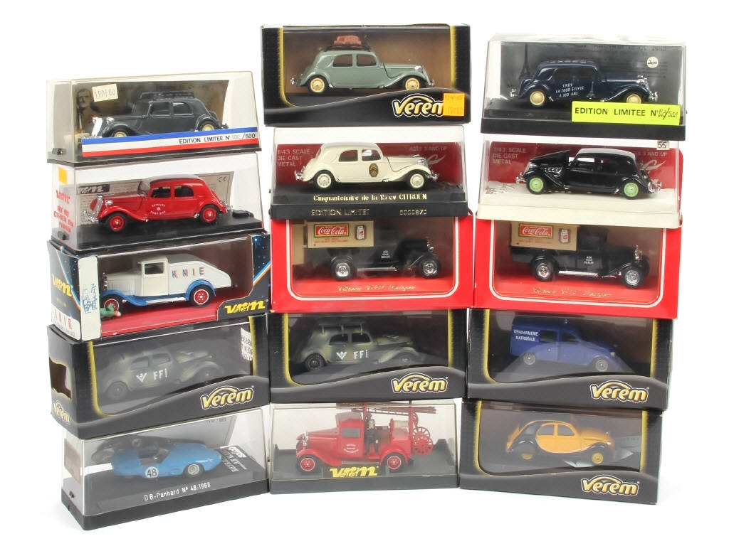 miniatures reproduisant les modèles : CITROËN (principalement) & PANHARD - on y retrouve les marques : SOLIDO & VEREM - certains exemplaires promotionnels - possibilité de petits accessoires manquants