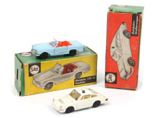 série 'ZINKGUSS' - comprend : PORSCHE 901 'POLIZEI' & MERCEDES 230 SL - ensemble plus ou moins encrassé - quelques accrocs & petites déchirures plus ou moins importants sur les boîtes par endroits