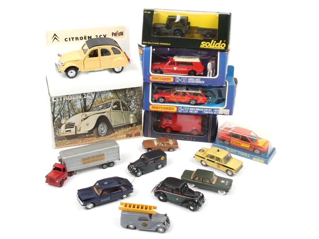 différentes échelles - on y retrouve notamment les marques : POLISTIL, MATCHBOX, BRUMM & SABLON (jantes fondues) - quelques petits manques (légers) - 6 exemplaires en boîte (états 'b' & 'c')