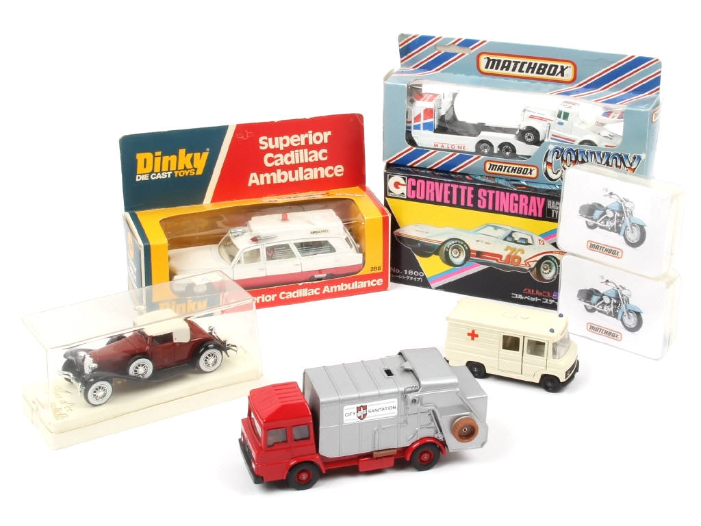on y retrouve les marques : MATCHBOX, SOLIDO, EDAÏ, CORGI TOYS & DINKY TOYS - 2 exemplaires sans boîte (d'autres en état 'c')