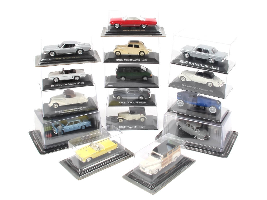 modèles distribués en kiosque - miniatures reproduisant notamment les modèles : PANHARD, FACEL VEGA & RENAULT - quelques boîtes en état 'c' - possibilité de petits manques
