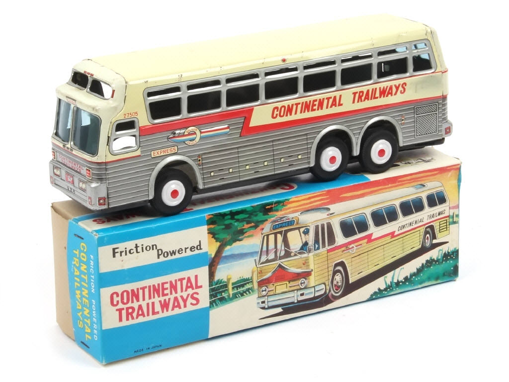 DIVERS (JAPON) 27505 SILVER EAGLE Autocar en tôle lithographiée 'CONTINENTAL TRAILWAYS' gris métal & crème