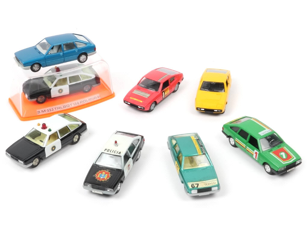 miniatures reproduisant les modèles : TALBOT, CHRYSLER & MATRA-SIMCA - on y retrouve les marques : MIRA & PILEN - un exemplaire en boîte (état 'b') - quelques petits manques sur certains décalques