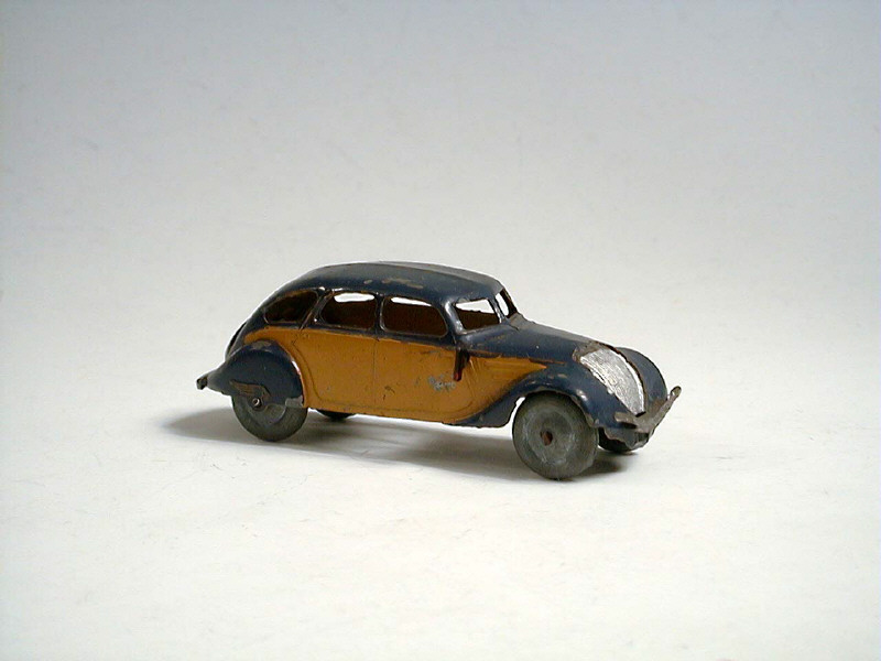 DINKY TOYS (FRANCE) 24L PEUGEOT 402 'TAXI' (version sans plancher & avec roues zamac) bleu soutenu & jaune d'or