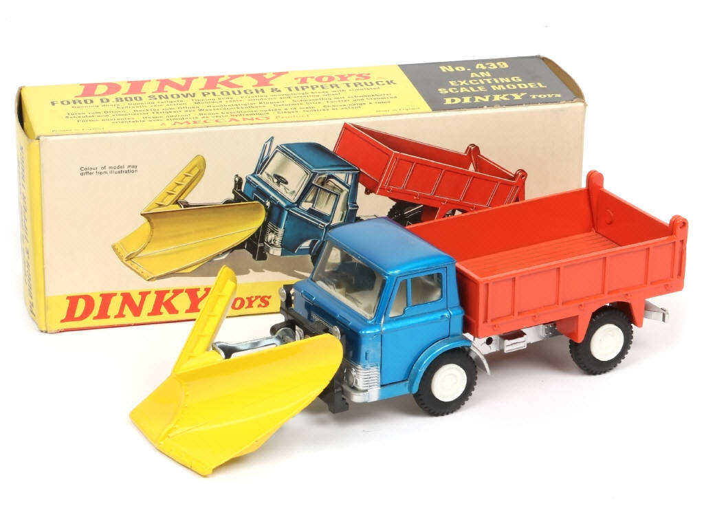 DINKY TOYS (GB) 439 FORD D 800 Chasse-neige & benne basculante bleu métal, orange & jaune