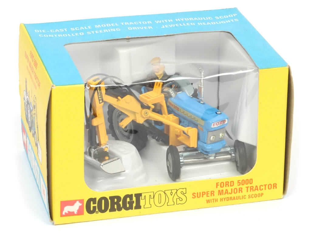 CORGI TOYS (GB) 74 FORD 5000 SUPER MAJOR Tracteur agricole avec pelle hydraulique latérale bleu, gris & jaune