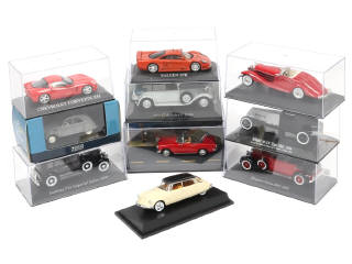modèles vendus en kiosque - miniatures reproduisant notamment les modèles : CHEVROLET, CITROËN (un exemplaire sans boîte), HISPANO SUIZA & CADILLAC - quelques petits accessoires cassés & manquants - fêlures sur certaines boîtes