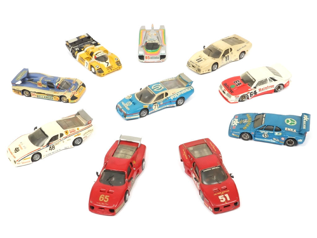 miniatures reproduisant notamment les modèles : FERRARI, PORSCHE & BMW - on y retrouve notamment les marques : STARTER, AMR & RECORD - avec manques & parties cassées