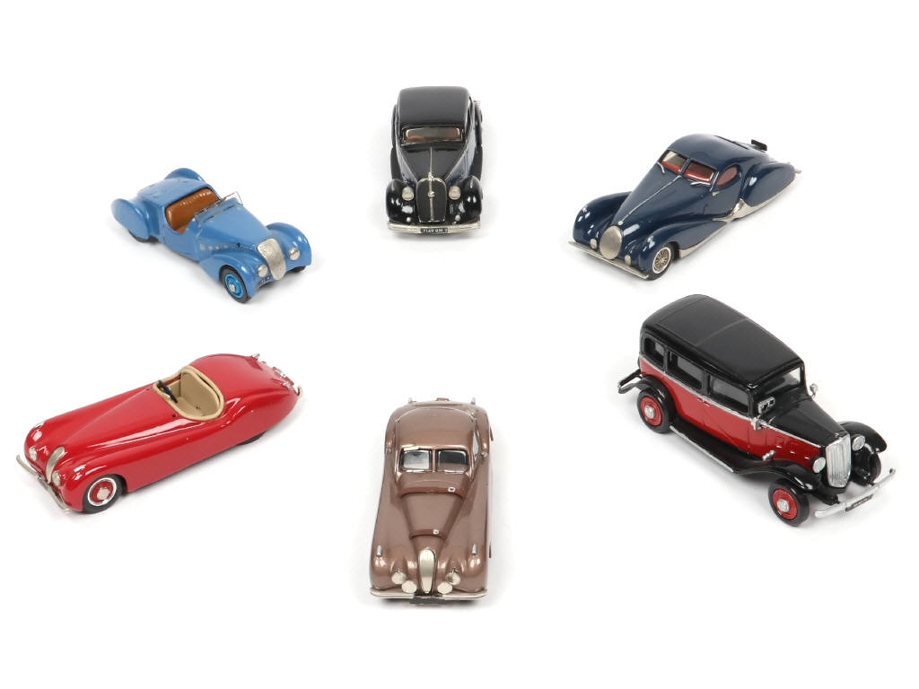 kits montés (principalement) - miniatures reproduisant notamment les modèles : JAGUAR, RENAULT & HOTCHKISS - on y retrouve notamment les marques : ELIGOR, L'AUTOMOBILISTE & WESTERN MODELS - quelques petits manques & parties cassées (plus ou moins importants suivant les modèles)