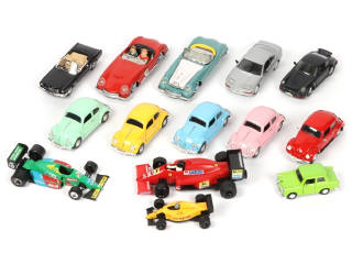 2 voitures en tôle (déformations, à frictions fonctionnent), une F1 à friction par mécanisme à tirette (mécanisme à revoir) - on y retrouve notamment les marques : SUNNYSIDE & BBURAGO - comprend les modèles : BMW, PORSCHE, VOLKSWAGEN, FORD - manques & parties cassées