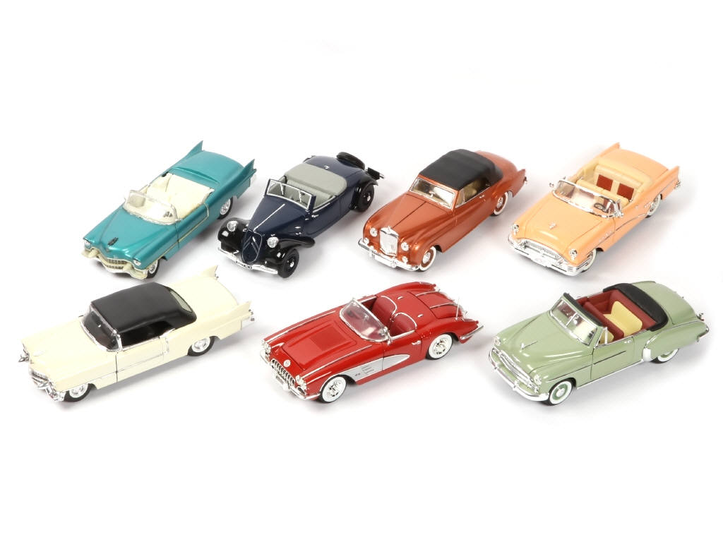 échelle 1/18e - comprend les modèles : CHEVROLET, BUICK, ROLLS ROYCE, CITROËN & CADILLAC - on y joint une CHEVROLET sans marque - possibilité de manques & parties cassées